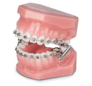 Corrects Class II bite problems by repositioning the jaws